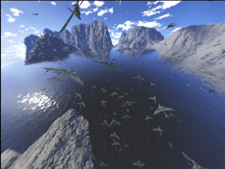A soaring birds simulation (OpenGL Challenge: Flock of Feathers) Screenshot | 5-21-01 | WallZ |