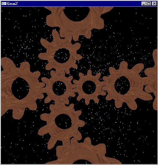 Earth & Moon Circling a Particle Sun (particle development vehicle, Pause and mouse for corona view) ScreenShot | 11-29-00 | GearZ | A Spherical Set of Rotating Gears ScreenShot | 11-29-00 | PlasmaZ | A Lava-Lamp simulation ScreenShot | 10-2-00 | CatacombZ | A mini-Doom game (update of NeHe October Challenge) | 10-28-00 | FuzZ |