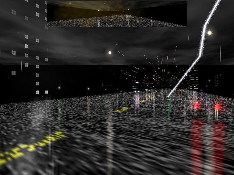 Driving down wet streets at night in the rain - (FlipCode: Precipitation) *** Sound bug fix *** Screenshot | 3-13-02 | PhysicZ |